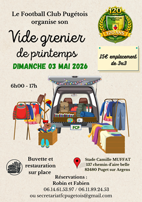 Le Football Club Pugetois vous invite à son grand vide grenier. 15€ l’emplacement (3x3m) Venez chiner, vendre et passer un moment convivial en famille ou entre amis. Buvette et restauration […]